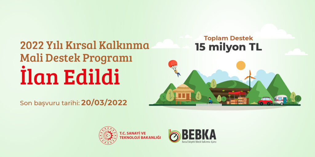 Sanayi ve Teknoloji Bakanlığı koordinasyonunda faaliyetlerini yürüten Bursa Eskişehir Bilecik Kalkınma Ajansı, 2022 yılı Kırsal Kalkınma Mali Destek Programı’nın tanıtılması amacıyla çevrim içi ortamda yapılan bilgilendirme toplantısında katılımcılara proje başvurusu çağrısında bulundu.