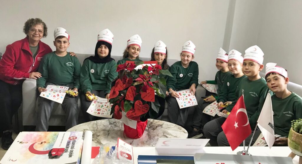 Mehmet Akif Ersoy Ortaokulu 5. Sınıf öğrencileri de Kızılay Şubesi’ni ziyaret ederek, ‘iyilik çınarı’nın kuruluş amacı ve yürüttüğü insani yardım faaliyetlerini hakkında bilgilendirildi.