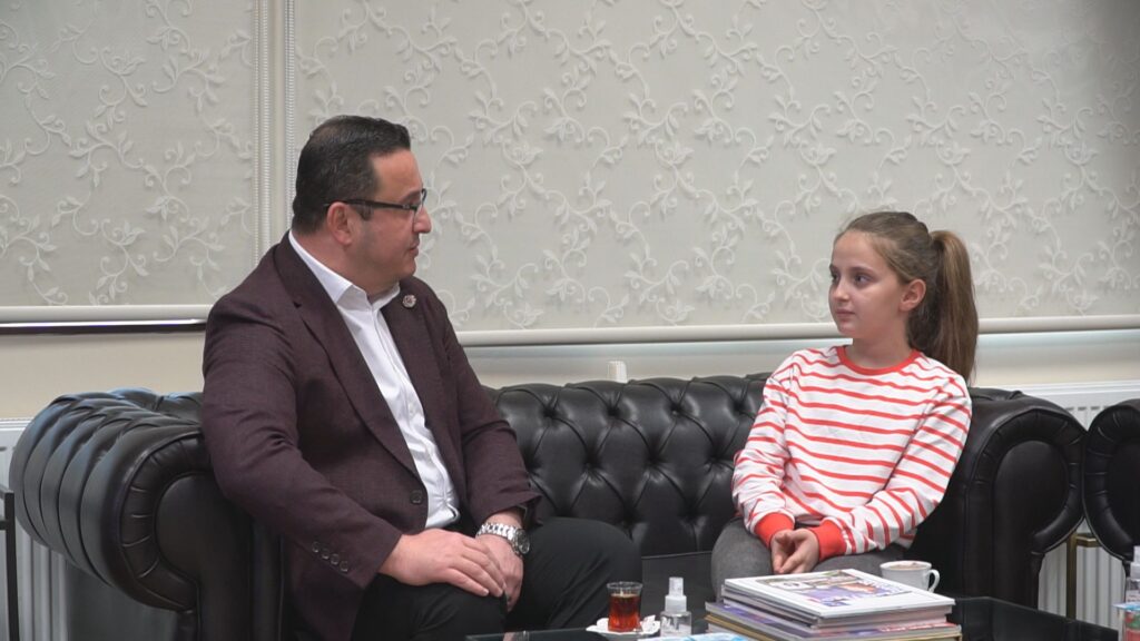 Çektiği videolarla birçok ulusal kanala ve ana haber bültenine konu olan 6. sınıf öğrencisi Yağmur Uslu, Belediye Başkanı Mehmet Kanar’ın konuğu oldu.