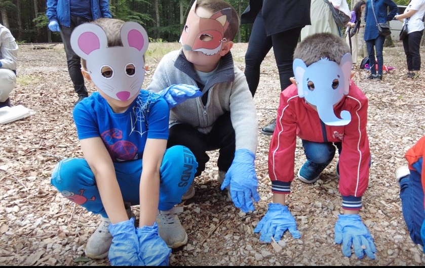 Minik doğaseverler, Çevre Haftası’nda yüzlerine taktıkları maske ile çöp toplayarak anlamlı bir mesaj verdi.
