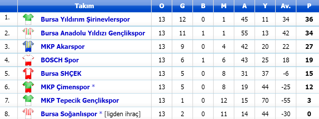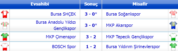 Geçtiğimiz hafta sonu Tepecik’le karşılaşan Çimen Spor, rakibini 3 golle geçerken, sezon boyunca inişli çıkışlı bir grafik sergileyen Akar Spor ise Bursa Anadolu Yıldızı karşında hükmen yenildi.