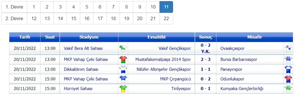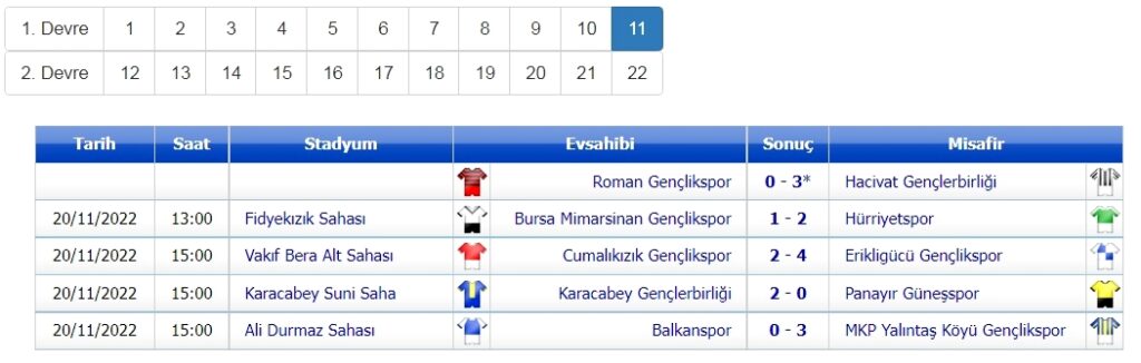 Bursa 1. Amatör Küme’de 22 haftalık sezonun ilk devresindeki son maçlar, 20 Kasım’da oynandı.
