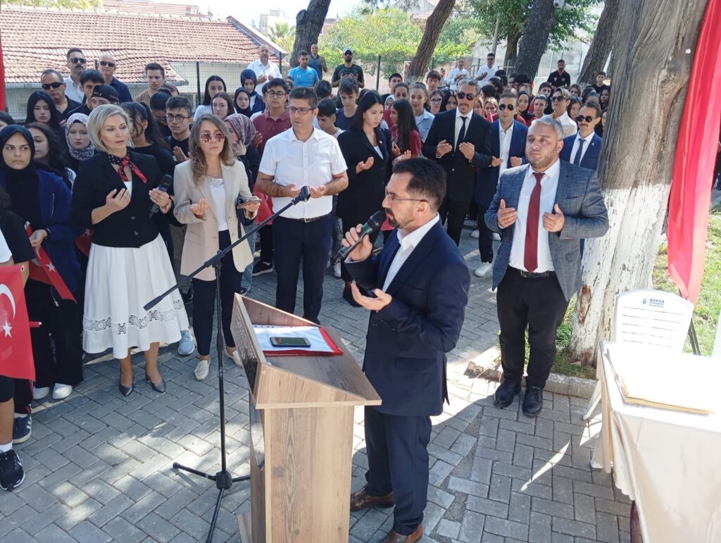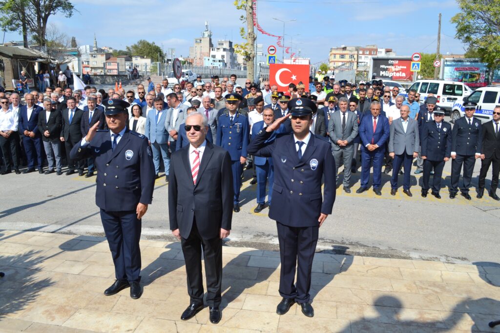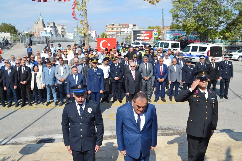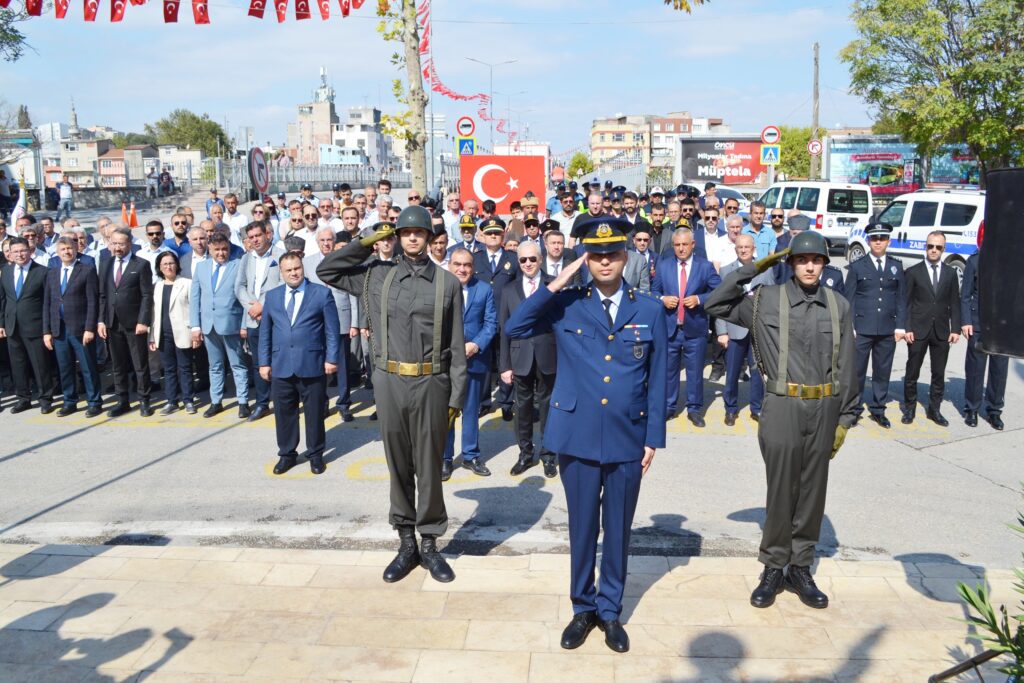 Kaymakam Mehmet Okur, Belediye Başkanı Şükrü Erdem, Hv. Per. Yzb. Fatih Karalök, Cumhuriyet Başsavcı Vekili Kamil Ersoy, siyasi parti ve STK temsilcileri, gaziler ve öğrencilerin katıldığı törende, Atatürk Anıtı’na çelenk sunularak, saygı duruşu ve İstiklal Marşı okundu.