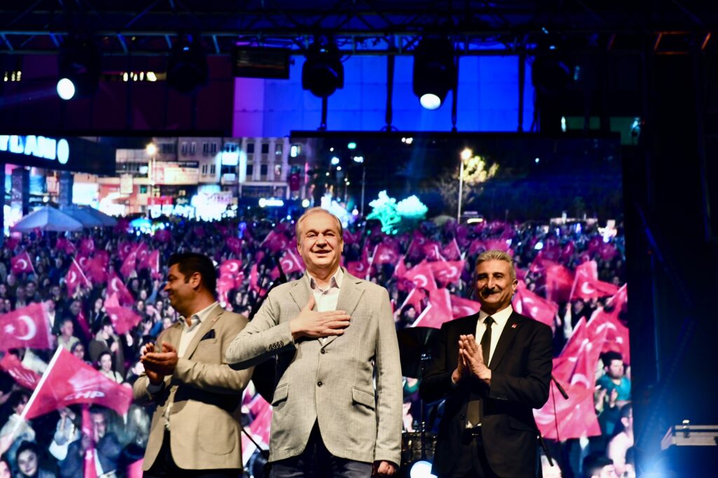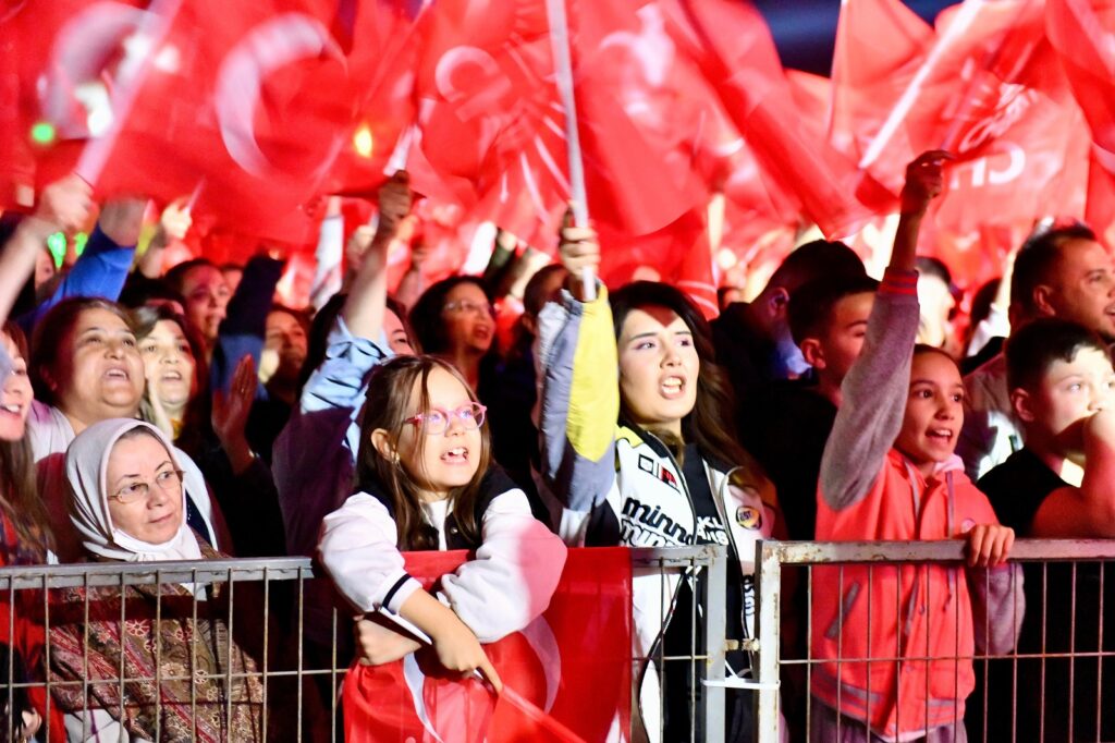 Adnan Menderes Meydanı’nda yükselen ‘Gençliğe Hitabe’ sonrası bir konuşma yapan Başkan Erdem, Mustafakemalpaşa halkına teşekkürlerini sunarak; “Erdemli Belediyecilik için çalışmalarımızı hızla sürdüreceğiz. Bu zafer Mustafakemalpaşa halkının zaferidir. Sizlerin desteği hep birlikte daha yaşanabilir, daha güzel bir Mustafakemalpaşa için çalışacağız’’ dedi.
