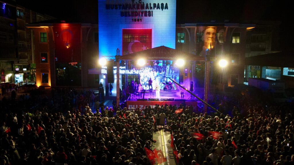Gecede, ünlü grup ‘Denden Band’ Mustafakemalpaşa halkına unutulmaz bir gece yaşattı. Binlerce kişi, Denden Band’ın enerjik performansı eşliğinde dans etti ve şarkılara eşlik etti. Meydanda renkli görüntülerin yaşandığı gece, halkın coşkusuyla doruğa ulaştı.
