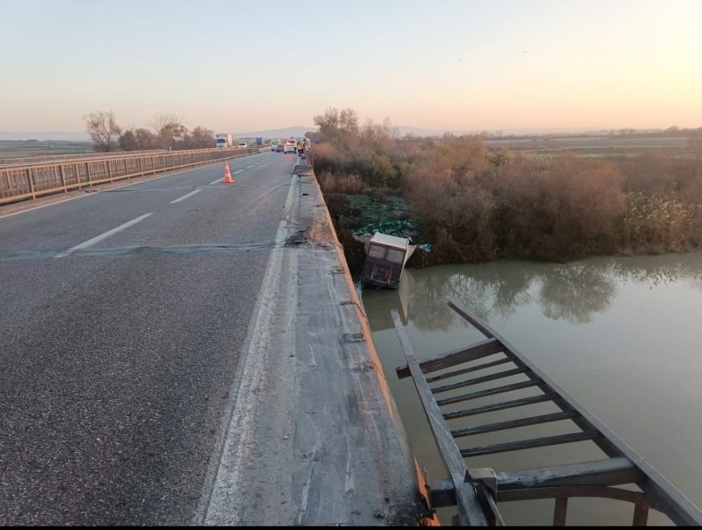 Edinilen bilgiye göre; Balıkesir istikametinden Bursa yönüne seyreden Kenan Uluğ idaresindeki 35 ZV 2087 plakalı kamyon, Karacabey’in Uluabat Mahallesi’nde henüz bilinmeyen bir sebeple direksiyon hakimiyetini kaybetti. Uluabat Köprüsü üzerinden geçerken bariyerlere çarpan meyve yüklü kamyon, demir korkulukların kopmasıyla dereye uçtu. Kazayı gören çevredeki vatandaşlar durumu ekiplere bildirdi. Uzun uğraşlar sonucu sıkıştığı yerden çıkarılan kamyon sürücüsü Kenan Uluğ’un hayatını kaybettiği belirlendi.