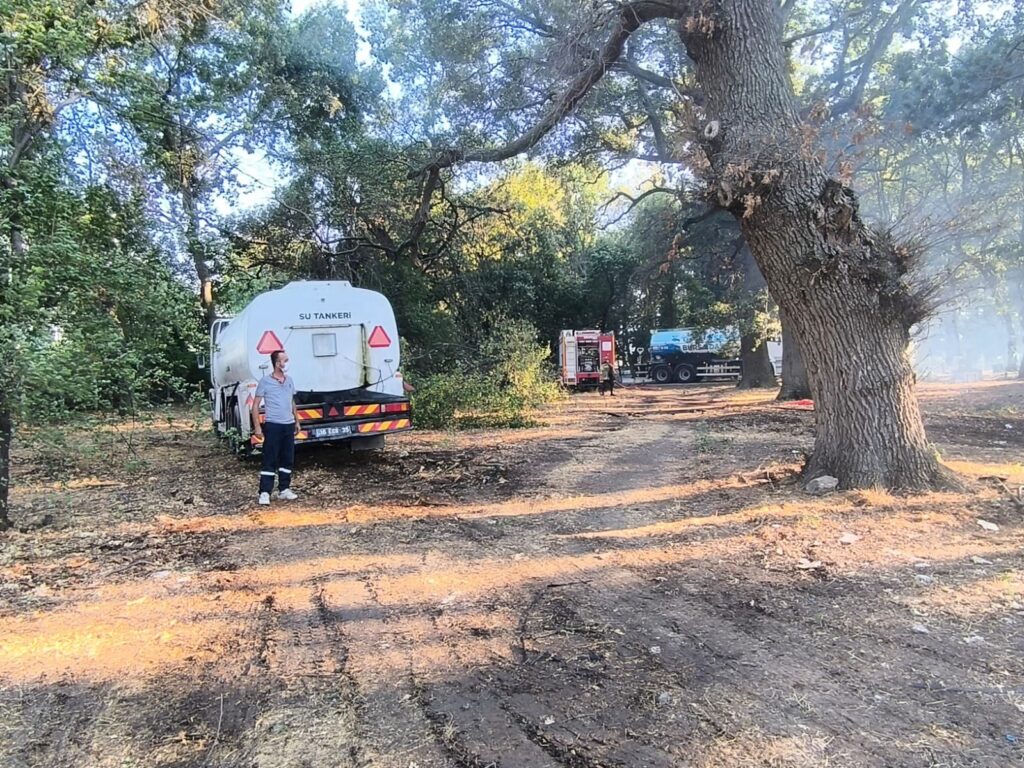 Mezarlık sınırları içerisindeki anıtsal ağaçlar yangında büyük zarar gördü. Yanan ağaçların dalları zaman zaman koparak aşağıya düşerken, bölgede görev yapan itfaiye ekiplerini zor anlar yaşadı. İtfaiye’nin yoğun çabaları sonucu yangın kontrol altına alınırken, ekipler bazı ağaçları kesmek zorunda kaldı.