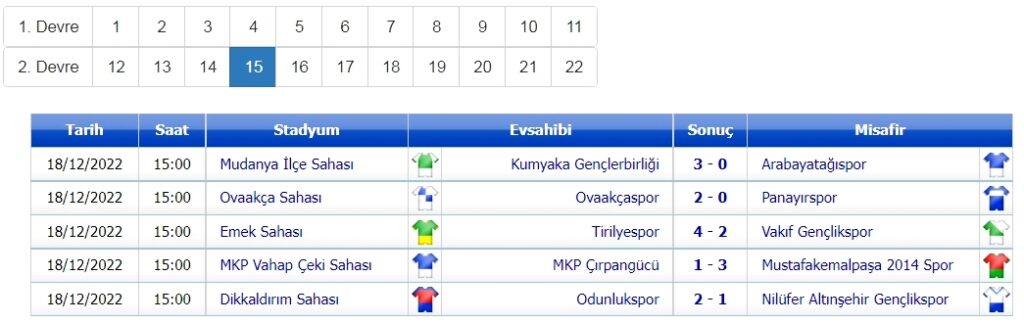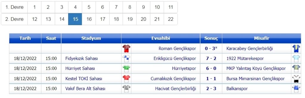 Bursa Amatör Küme’de 15’inci hafta maçları, 18 Aralık tarihinde oynandı.
