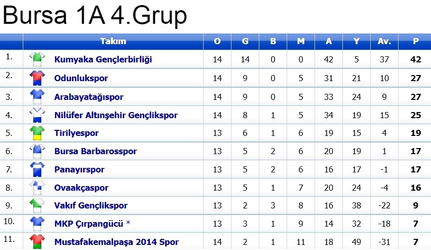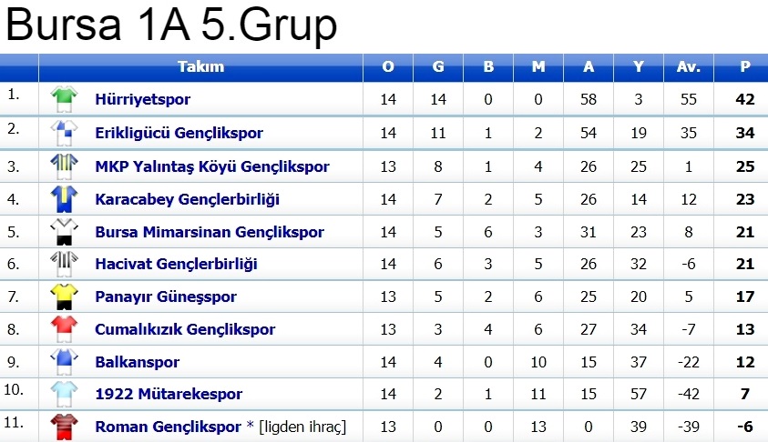 11 takımlı grupta son sırada bulunan MKP 2014 puanını 7 yaparak, 10’uncu basamaktaki Çırpan Gücü ile puanını eşitledi.