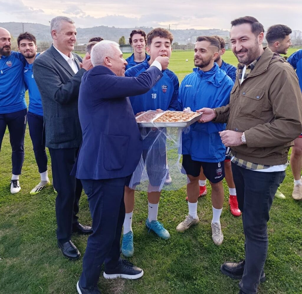 Futbolcuları ve teknik ekibi antrenmanda ziyaret eden MUGEP heyeti, oyuncularla bir süre sohbet etti. Takım kaptanı Cihat Kahraman nezdinde kırmızı-lacivertli ekibe baklava ikramında bulunan MUGEP Başkanı Vahdettin Sevim, üst sıraları yakından ilgilendiren yarınki mücadelede Paşa’ya güvenlerinin tam olduğunu, taraftarı sevindirecek bir skorla sahadan ayrılacaklarına inandıklarını söyledi.