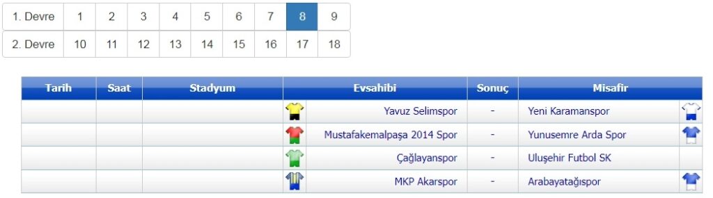 8 takımlı 5. Grup’ta puansız son sırada kalan Mustafakemalpaşa 2014, sezonun 8. haftasında Yunus Emre Arda Spor’u ağırlayacak. Uluşehir SK’nın ligden çekilmesi nedeniyle haftayı hükmen 3 puanla tamamlayan 18 puanlı lider Akar Spor ise Arabayatağı’nı konuk edecek.