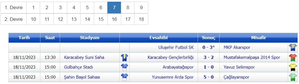 Bursa 1. Amatör Küme de 7. hafta maçları, 18 Kasım Cumartesi günü oynandı.