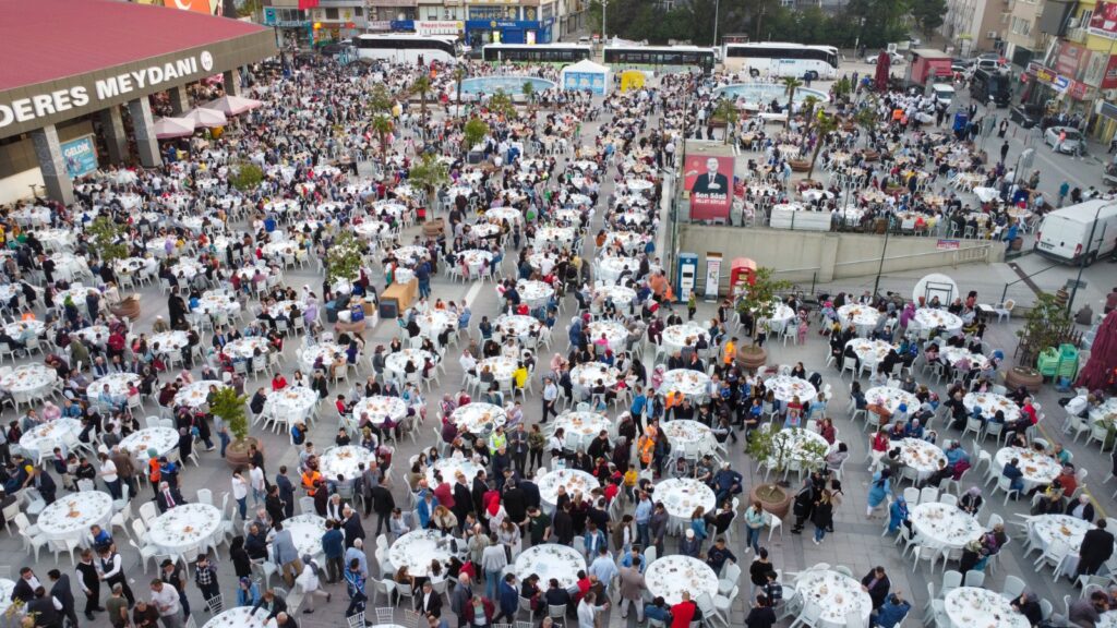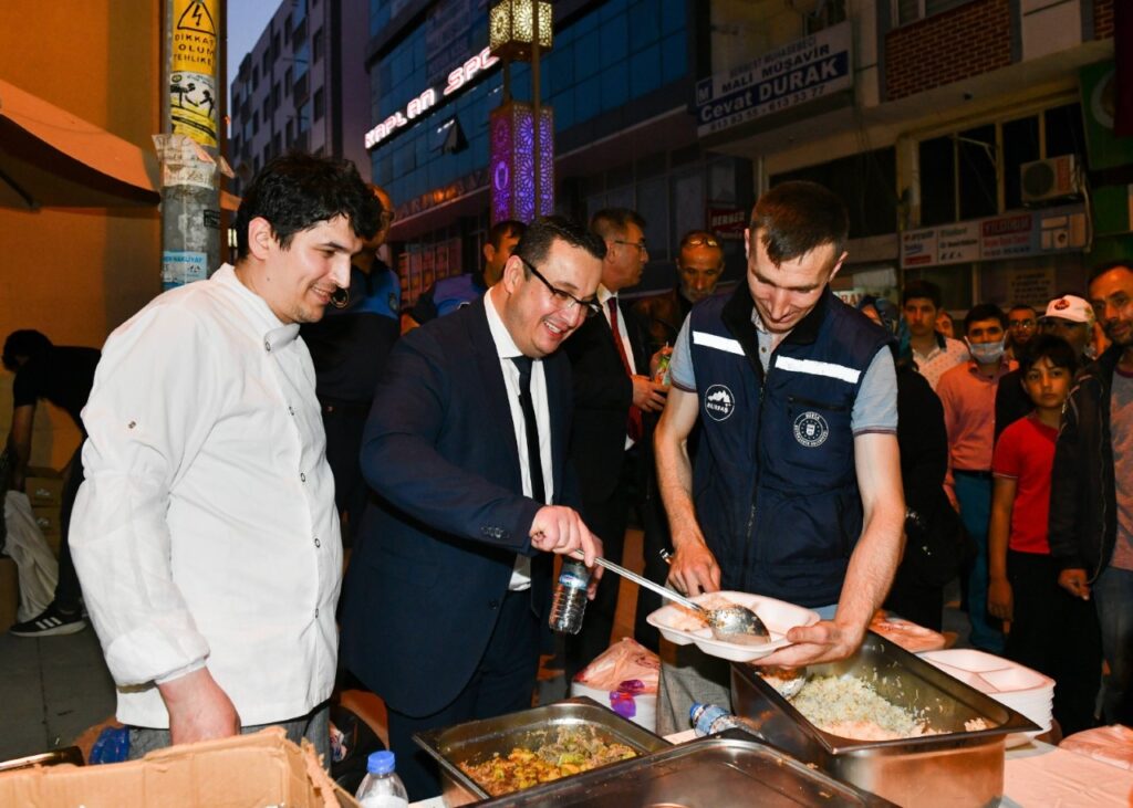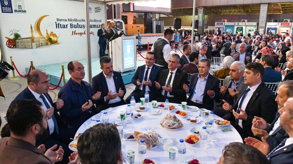 Bursa Büyükşehir Belediyesi’nin Mustafakemalpaşa’da düzenlediği iftar programı da Adnan Menderes Meydanı’nda yapıldı.