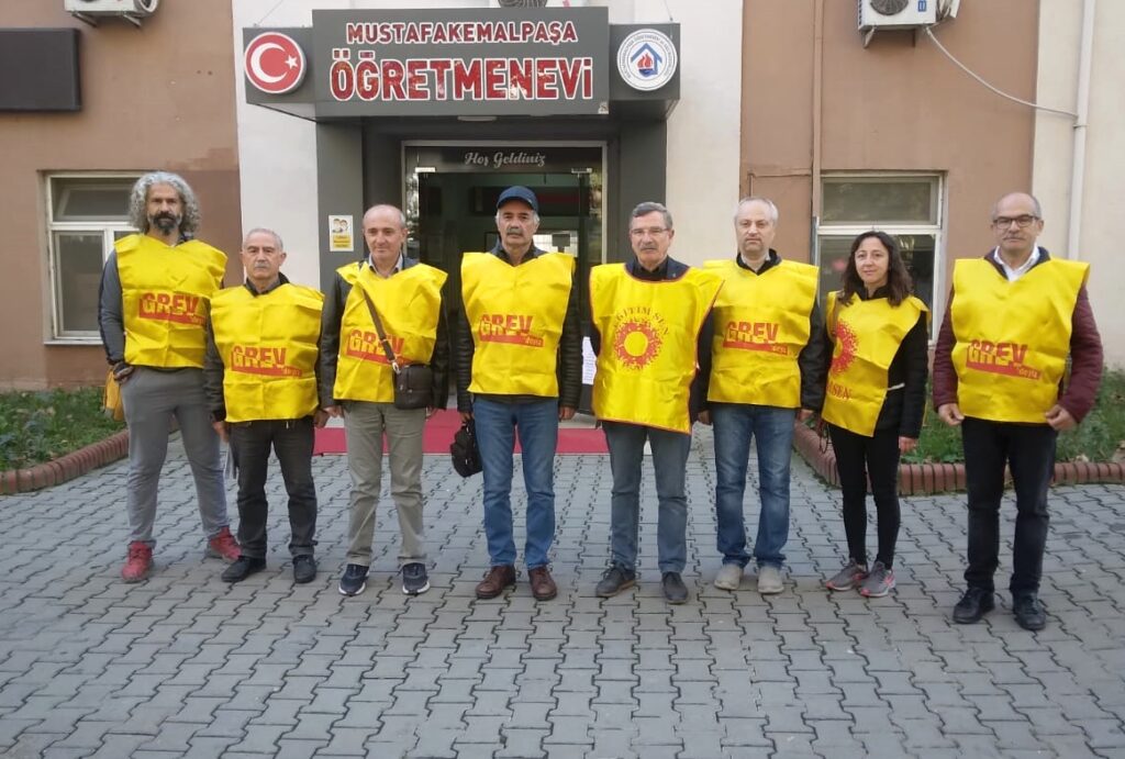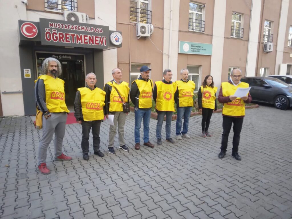Eğitim-Sen Mustafakemalpaşa Şube Başkanı Seyit Ali Geçici yaptığı açıklamada; “Meslek itibarımız, haklarımız ve geleceğimiz için eğitim emekçileri olarak bugün iş bırakıyoruz!” dedi.