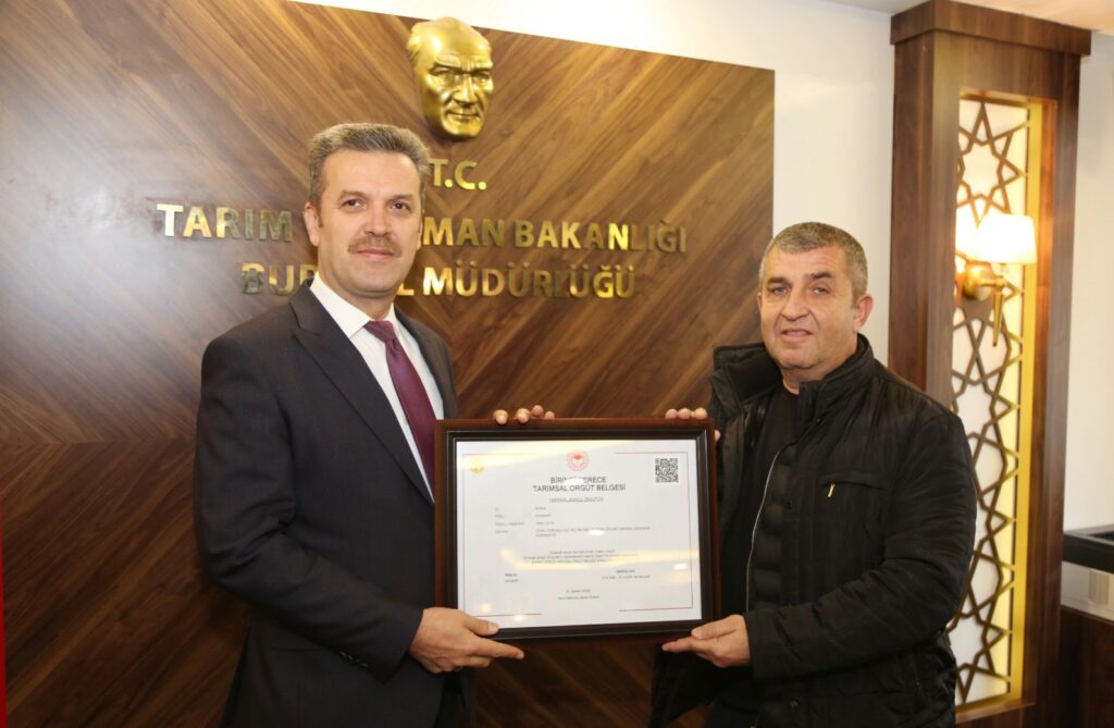 Tarım ve Orman Bakanlığı tarafından kooperatifçiliği ve üretici birliklerini teşvik etmek amacıyla hayata geçirilen ‘derecelendirme’ uygulaması kapsamında Bursa’da 7 tarımsal amaçlı örgüt, yüksek puan alarak ‘Birinci Derece Tarımsal Amaçlı Örgüt Belgesi’ almaya hak kazandı.