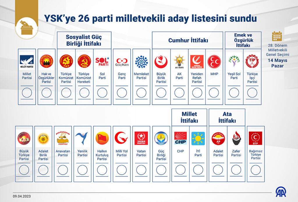 14 Mayıs’taki seçim için Yüksek Seçim Kurulu’na 26 siyasi parti liste sundu.