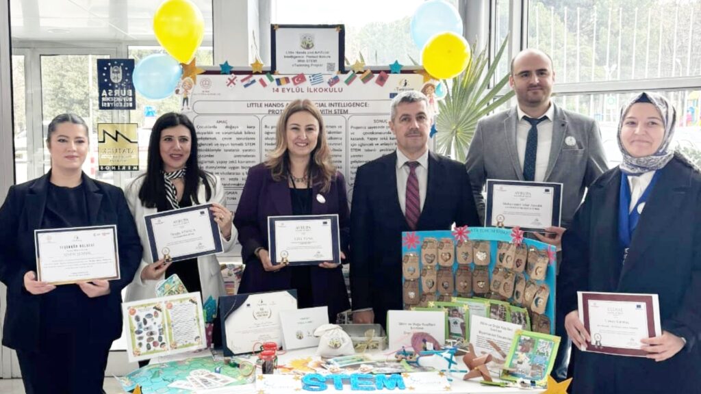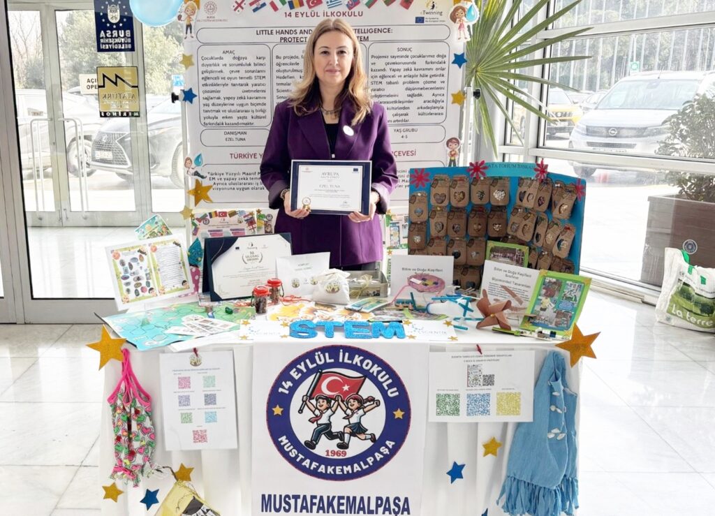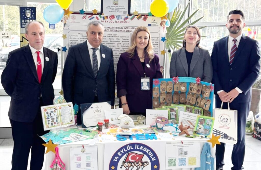 16. eTwinning Ulusal Konferansı’na davet edilen ‘Little Hands and Artificial Intelligence: Protect Nature with STEM’ adlı eTwinning projesinin kurucusu Ezel Tuna’nın proje standı Bursa Milli Eğitim Müdürü Gürhan Çokgezer, Mustafakemalpaşa Milli Eğitim Müdürü Veysel Çalık ve Mustafakemalpaşa görev yapan eTwinner öğretmenler tarafından ziyaret edildi.
