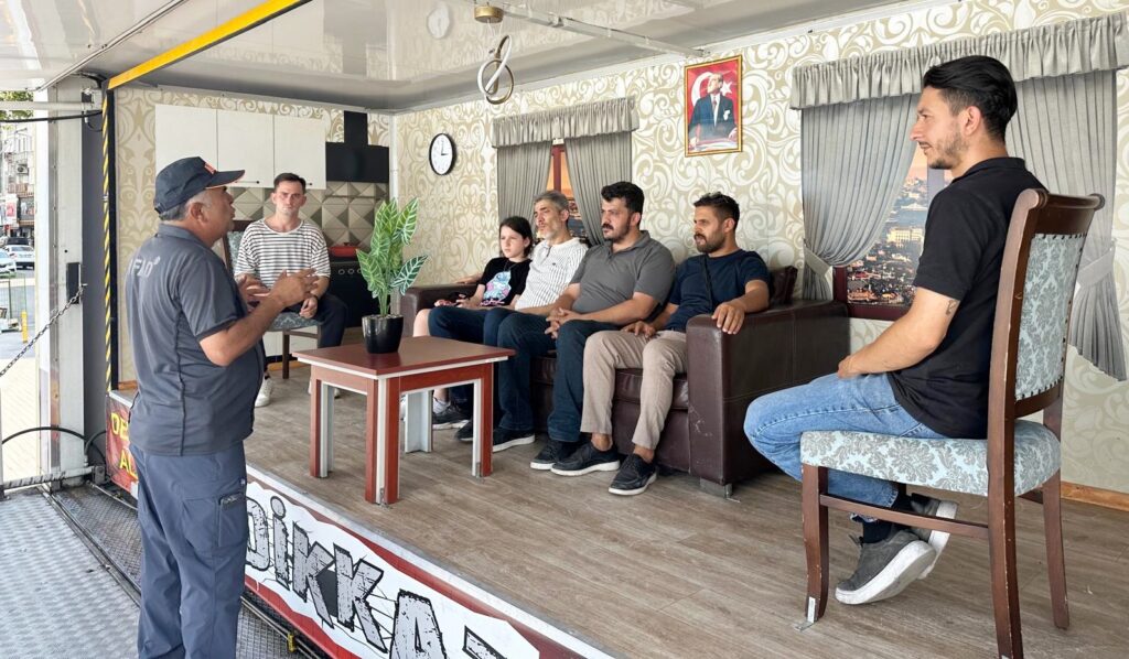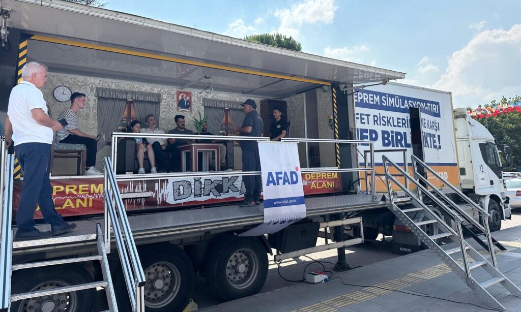 Deprem konusunda farkındalık oluşturmak amacıyla hazırlanan özel tırı ziyaret edenlere, 6,8 büyüklüğünde ve 47 saniye süren yapay bir deprem deneyimi yaşatıldı. Adnan Menderes Meydanı’na kurulan tırın içinde mini bir oda şeklinde tasarlanan platforma gruplar halinde alınan vatandaşlar, deprem anını birebir tecrübe etme fırsatı buldu.