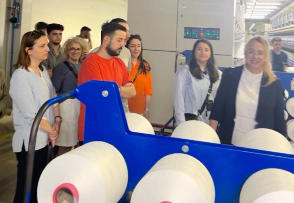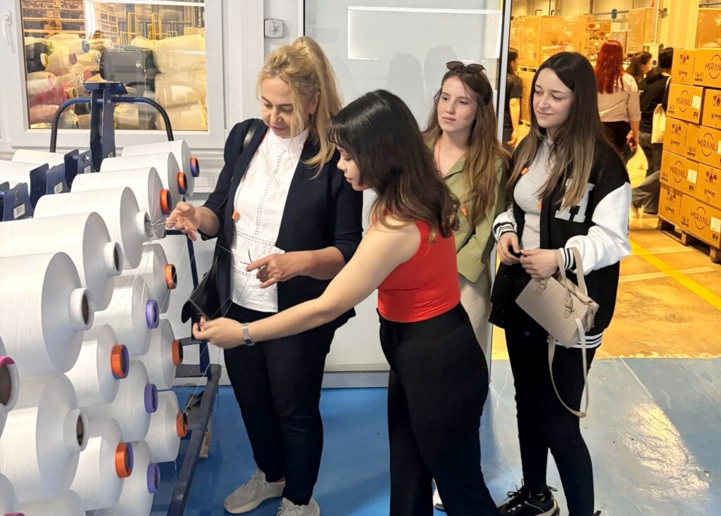 Kalite Kontrol Şefi Zeynep Söğüt ile Planlama ve Kalite Güvence Müdürü Ezgi Aslan, öğrencilere üretim süreçlerinin teknik boyutlarını kapsamlı biçimde aktardı. Etkinliğin dikkat çeken anlarından biri ise Miranlı İplik Genel Müdür Yardımcısı Bülent Yiğit’in üretim hatlarını aşama aşama gezdirerek anlatımı oldu. Yiğit’in üretim süreçlerine dair detaylı açıklamaları öğrencilerin büyük ilgisini çekti.