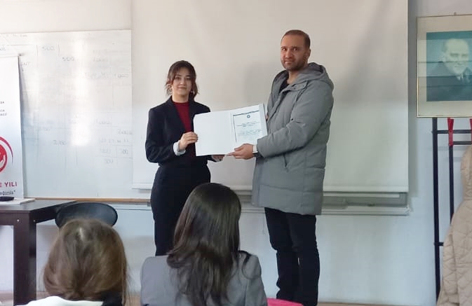 Etkinliğin sonunda Müdür Yardımcısı Öğr. Gör. Dr. Fatih Bilici, katkıları ve değerli paylaşımları için sosyal çalışmacı Yağmur Kancılar’a teşekkür ederek teşekkür belgesini takdim etti.