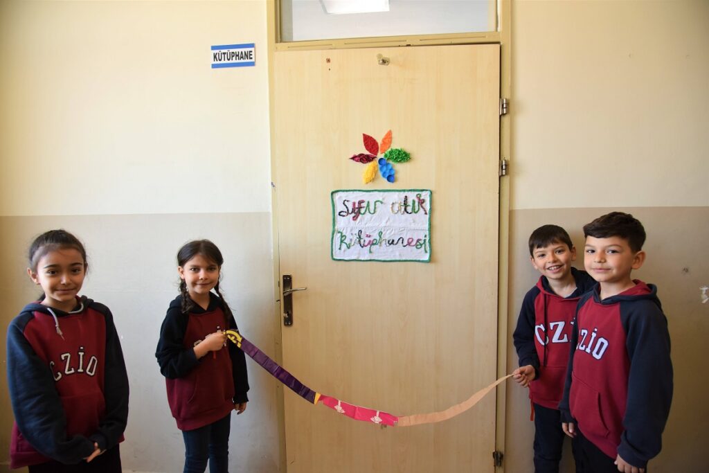 Öğrenciler için kitap okuma etkinlikleri dışında atıklardan yapılacak etkinlikler ve oyun oynayabilmeleri için hazırlanan kütüphane ilk günden çocukların gözdesi oldu.