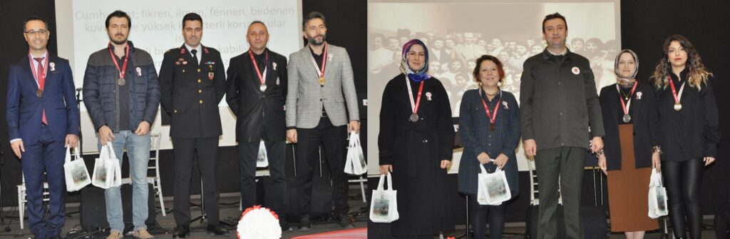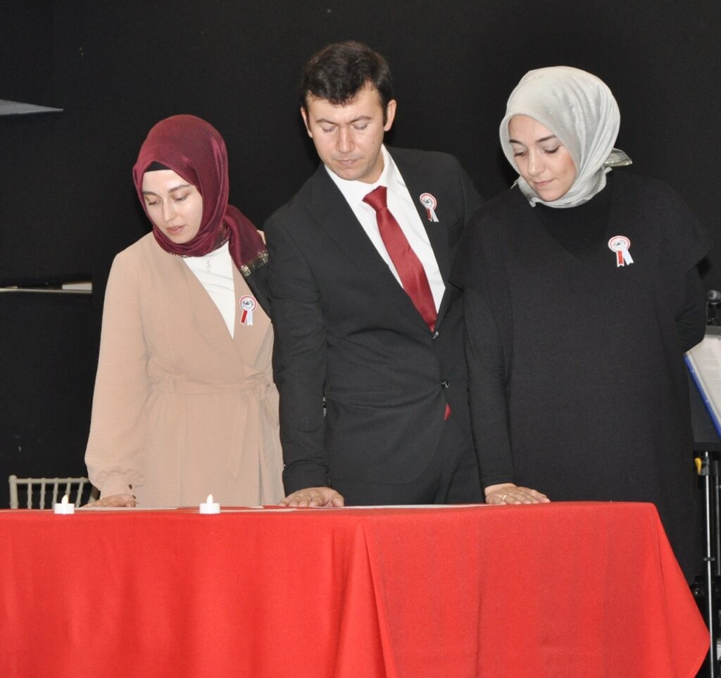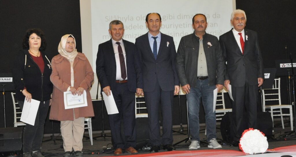 Okullar arası şiir ve kompozisyon yarışmalarında birinci olan eserler okunduğu törende, adaylık sürecini tamamlayan öğretmenler yemin ederken, emekli olan eğitimcilere de Hizmet Şeref Belgesi takdim edildi.