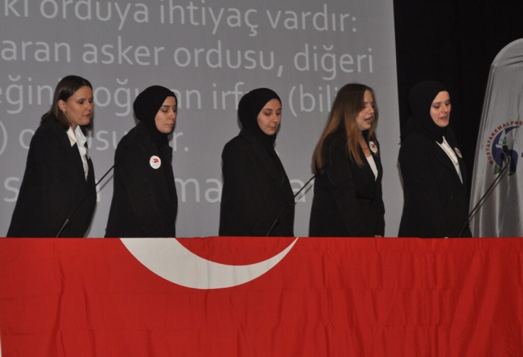 Okullar arası şiir ve kompozisyon yarışmalarında birinci olan eserlerin okunduğu törende, adaylık sürecini tamamlayan öğretmenler Elif Acar, Esra Bulat, Hümeyra Alkaya, Seda Gündoğan, Esra Bitirmiş ve Yasemin Boztaş yemin etti.