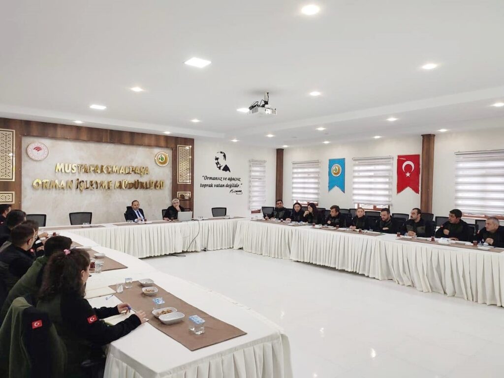 Orman İşletme Müdürü Kenan Şahin tarafından karşılanan Esat Şimşek, teknik personelle değerlendirme toplantısı yaptı.