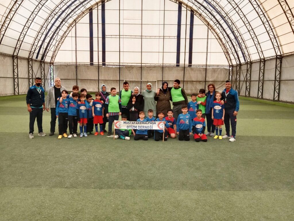 Deprem bölgesinde hayatını kaybeden otizmli çocuklara dikkat çekmek için gökyüzüne balon salan otizmli bireyler, Büyük Mustafakemalpaşaspor Futbol Okulu ile Süngü Spor Tesisi’nde özel bir maç yaptı. Renkli aktivitelerle günün tadını çıkaran çocuklar, pasta keserek bu özel günü kutladı.
