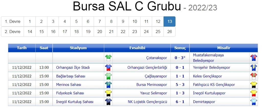 C- Grubu’nda 13. hafta da aynı gün ve saatte 5 maç daha oynandı.