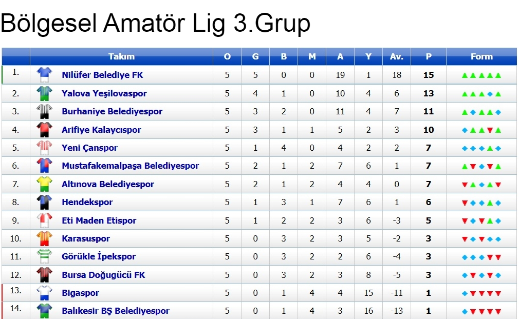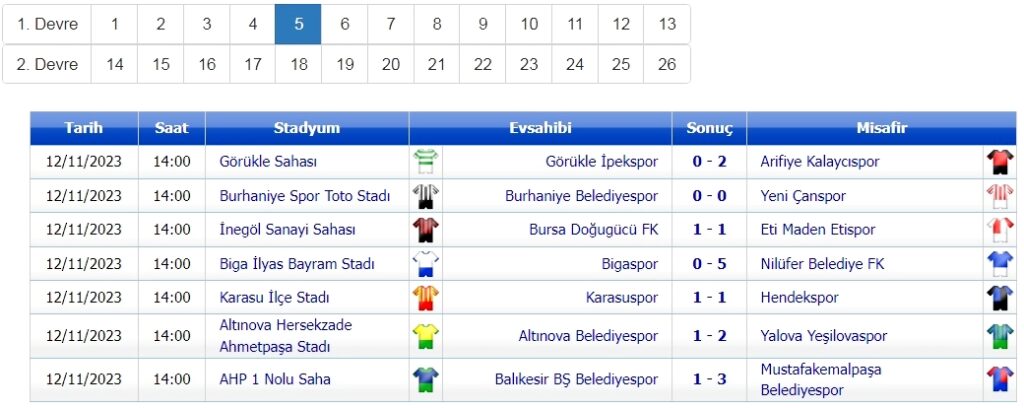 3. Grup’ta haftanın diğer maçlarında lider Nilüfer Belediye, deplasmanda Biga’yı 5-0 yenerken, Bursa Doğu Gücü ile Eti Maden 1-1 berabere kaldı. Arifiye Kalaycı’yı konuk eden Görükle İpek sahadan 2-0 mağlup ayrıldı. Burhaniye ile Yeni Çan’ın 0-0 kaldığı haftada, Karasu ile Hendek maçı da 1-1 sonuçlandı. Yalova Yeşilova ise Altınova Belediye’yi 2-1 yendi.