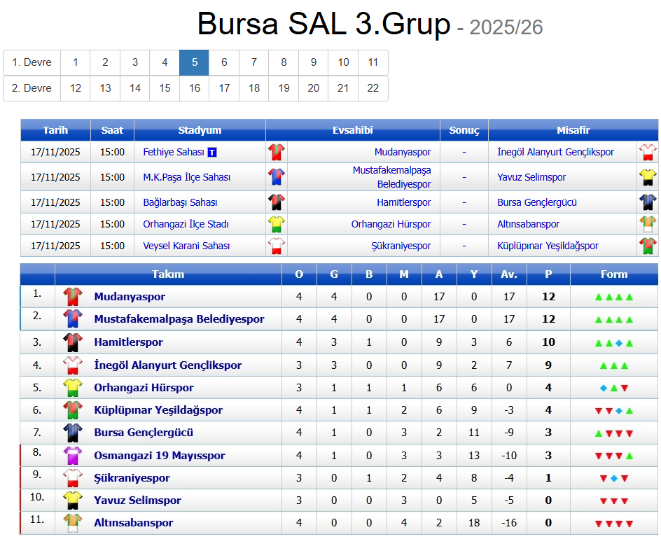 Grupta, zirveyi yakından ilgilendiren kritik maçta, Paşa ile birlikte aynı puan ve averajla liderliği paylaşan Mudanya, tarafsız sahada İnegöl Alanyurt Gençlik’i ağırlayacak. Aynı gün ve saatte oynanacak diğer maçlarda ise Hamitler-Bursa Gençler Gücü, Orhangazi Hür-Altınsaban ve Sükraniye-Küplüpınar Yeşildağ karşılaşacak.