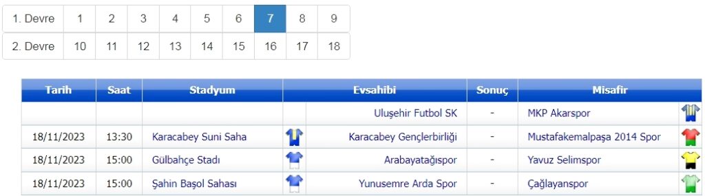 Bursa 1. Amatör Küme de 7. hafta maç programı belli oldu.