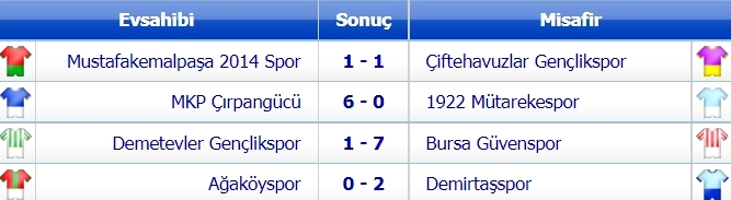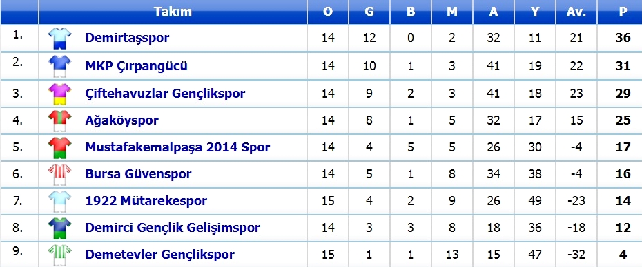6. Grup’ta orta sıralarda bulunan 2014 Mustafakemalpaşa ise bu hafta sonu lider Demirtaş’a konuk olacak. Sezonun ilk devresindeki mücadeleyi 2-0 kazanan 2014 Mustafakemalpaşa, aynı gün saat 13.30’da Atıcılar-2 Sahasında oynanacak karşılaşma da bir sürprize imza atmak istiyor. Kırmızı-siyahlı takım, zorlu maç öncesi 17 puanla 5’inci sırada yer alıyor.