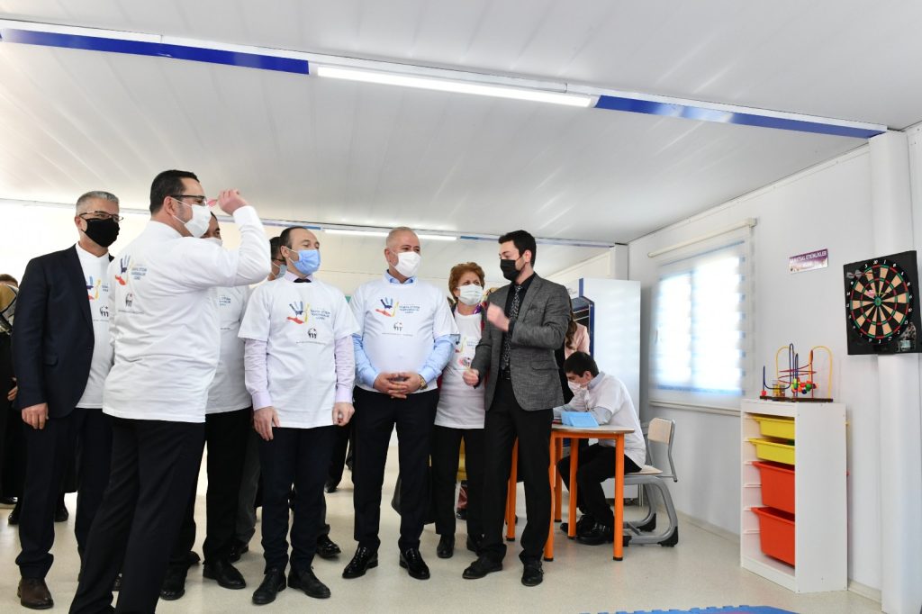 Murat Uzgur Engelsiz Yaşam Merkezi içerisinde hizmet vermeye başlayan merkezi gezen davetliler daha sonra özel çocukların el emeği ile yaptığı ürün sergisini ziyaret etti.