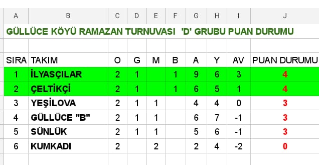 Günün ilk maçında D Grubu’nda İlyasçılar Güllüce’yi 5-2 mağlup etti.