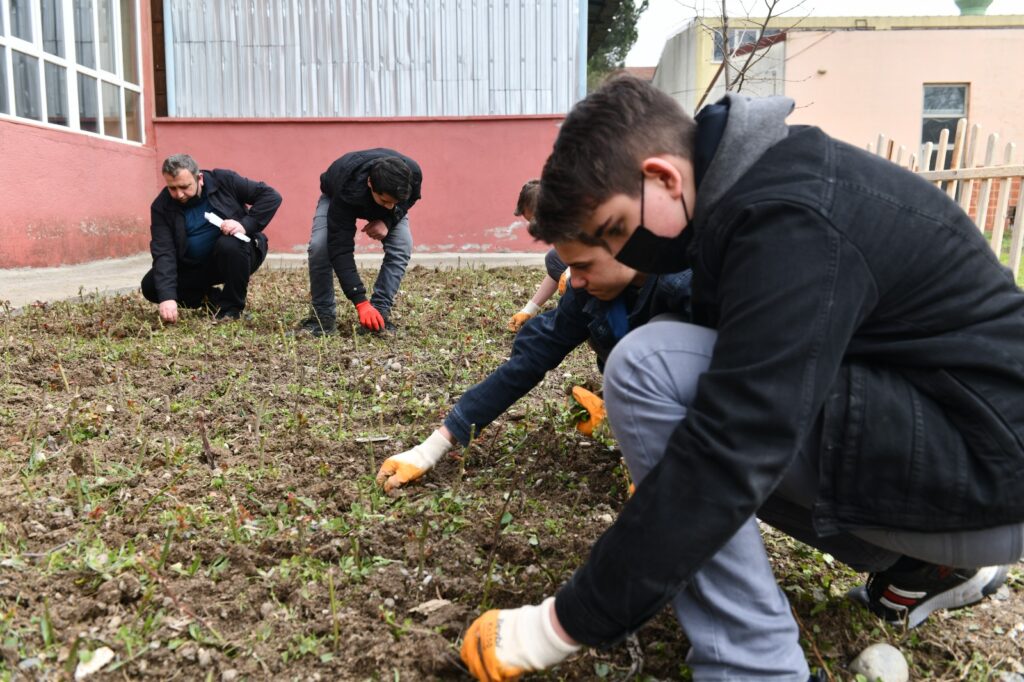 Mustafakemalpaşa Mesleki ve Teknik Anadolu Lisesi Türk Dili ve Edebiyatı Öğretmeni Hikmet Sezer’in yürütücü olarak görev aldığı ‘Gönüllere Dokunuyoruz Projesi’ kapsamında öğrenciler okul bahçesinde gülfidanı yetiştirdi.