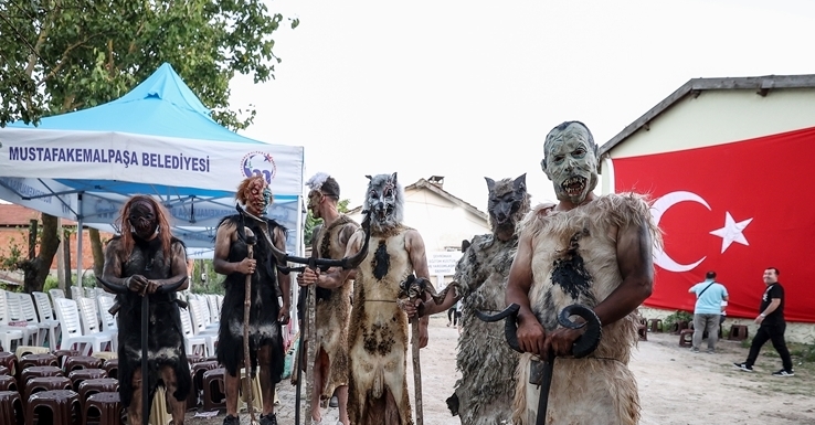 Mustafakemalpaşa’ya 40 km uzaklıkta bulunan kırsal Şehriman Mahallesi’nde, ata yadigârı yöresel bir gelenek olan ‘Alabaşlar’, korkutucu kostümleriyle bu yılda meydana indi.