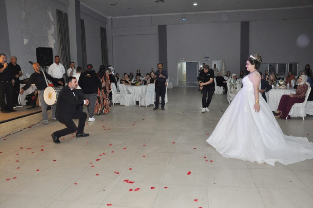 Nikah töreninde mutluluğa ‘evet’ diyen gençlerin heyecanları gözlerinden okundu. Şıklığı ile göz kamaştıran Ayşe ve Muhammed çifti, geç saatlere kadar süren düğünde, davetlilerle birlikte gönüllerince eğlendi.