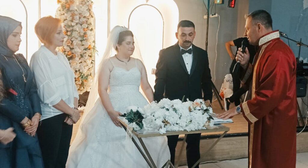 Genç çiftin nikâh töreni ve düğün cemiyeti, 7 Eylül akşamı Yalıntaş Kültür Merkezi’nde yapıldı.