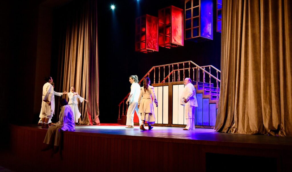Steinbeck’in hayali Paris’inde geçen ‘Kısa Süren Saltanat’, Mustafakemalpaşa izleyicisine politik hiciv ve kara mizahın iç içe geçtiği unutulmaz bir tiyatro deneyimi sundu.