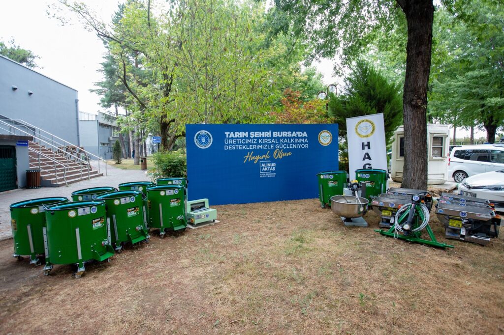 Son alarak Mustafakemalpaşa, İznik, Keles, Kestel, Nilüfer, Osmangazi, Gürsu, Orhangazi, Orhaneli, Mudanya, İnegöl, Harmancık, Yenişehir ve Yıldırım’daki 41 mahalleye, ceviz soyma ve ceviz silkeleme makinesi, salça makinesi, hamur yoğurma makinesi, erişte makinesi, 17 tepsili fırın, gübre serpme makinesi, badem soyma makinesi ve üzüm sıkma makinesi dağıtıldı.