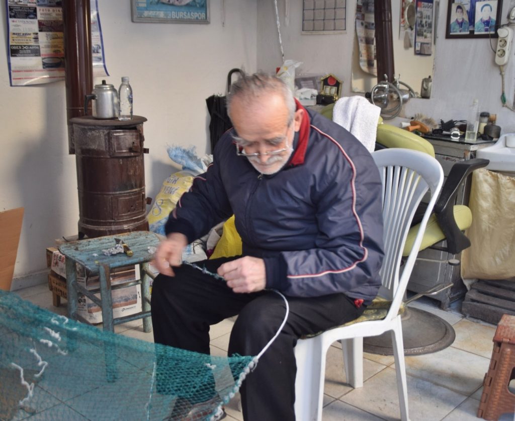 “ Yıllar önce bu işe merakım vardı. 30 yıl önce Ali amca bu ağ örme işlerini yapardı. Onun teşviki ve öğrettiği bilgilerle berberliğin yanı sıra bu işe başladım. El sanatlarına yatkınlığımdan dolayı bu işi çabuk kaptım ve yıllar geçtikçe bu konuda da ustalaştım” diyen Oduncuoğlu; “ Bu iş emek ve dikkat istiyor. Günde 6 saat çalışmayla 5 kilo kurşun ile döşenen serpme ağı 1 ay içinde tamamlıyorum. Bunun yanı sıra aileler için hamak ve spor kulüpleri için de sipariş üzerine file üretiyorum” şeklinde konuştu.