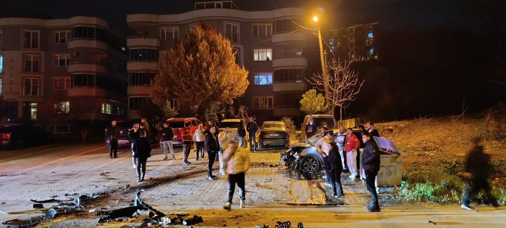 Edinilen bilgilere göre kaza, dün gece saat 23.30 sıralarında Terminal Yolu Cumhuriyet Bulvarı üzerinde meydana geldi. İddiaya göre, terminal istikametine seyir halinde olan 16 BNY 184 plakalı otomobil, sürücüsünün direksiyon hâkimiyetini kaybetmesi sonucu karşı şeride geçti. İçerisinde iki kişinin bulunduğu araç, bu sırada Gözde Sitesi önünden Mustafakemalpaşa merkezine doğru ilerleyen 45 AZK 916 plakalı otomobille kafa kafaya çarpıştı.