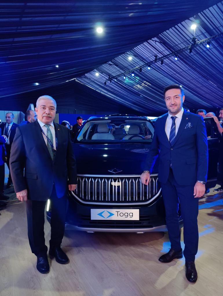Cumhurbaşkanı Recep Tayyip Erdoğan’ın katılımı ile TOBB ve TOGG Yönetim Kurulu Başkanı M. Rifat Hisarcıklıoğlu’nun ev sahipliğinde yapılan tanıtım törenine davet edilen Uzkınay ve Özmen, TOGG ile poz verdi.