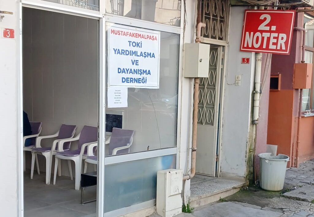 • Ümit Şeker’in kurucu başkanlığında 8 üyenin girişimiyle kurulan Mustafakemalpaşa TOKİ Yardımlaşma ve Dayanışma Derneği, 23 Aralık itibariyle faaliyetlerine ve üye kabulüne başladı. Mağdur vatandaşlar, konutların bir an önce teslim edilmesini talep ederken, KDV oranları ve ödeme seçenekleri içinde hak arayacak.