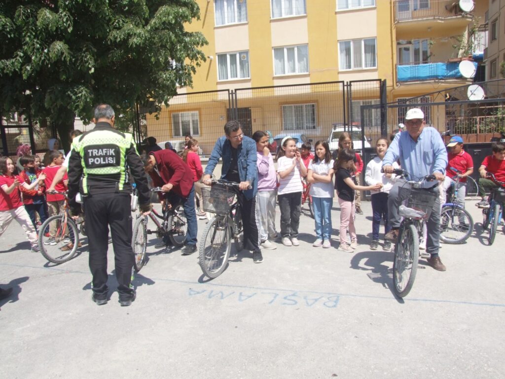 Trafik Amirliği tarafından okul bahçesinde trafik kurallarının önemi, yayalar için güvenli trafik kuralları, güvenli oyun alanları ve bisiklet sürmede uyulması gereken kurallar anlatılırken, öğrenci, öğretmen ve ailelerin katılımıyla düzenlenen ‘En Yavaş Giden Bisiklet Yarışması’nda ise renkli anlar yaşandı.