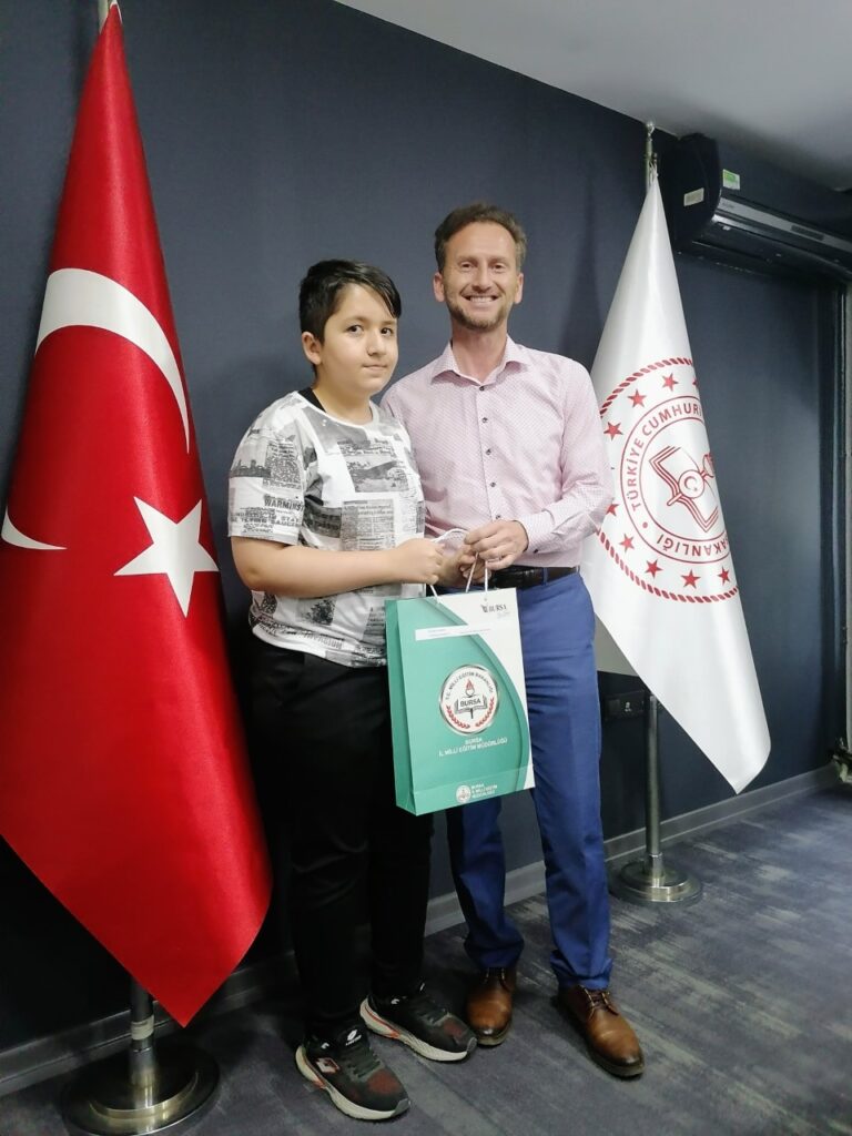 Dereceye giren öğrenciler ödüllerini, Bursa Milli Eğitim Müdürlüğü’nde düzenlenen törende Milli Eğitim Müdür Yardımcısı Ayrın Narin’in elinden aldı.