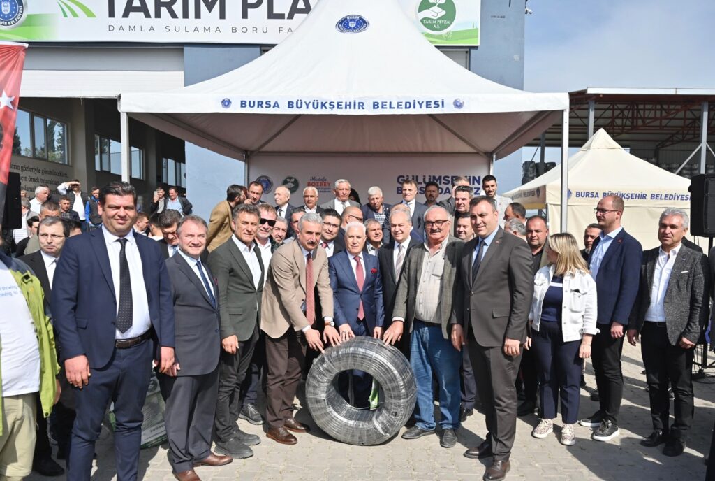 Bursa Büyükşehir Belediyesi Kırsal Hizmetler Dairesi Başkanlığı ile Tarım Peyzaj AŞ iş birliğinde yürütülen ‘Hibeli Damla Sulama Boru Projesi’ kapsamında toplam 10 bini aşkın sulama borusu, düzenlenen törenle yaklaşık 1500 çiftçiye teslim edildi.