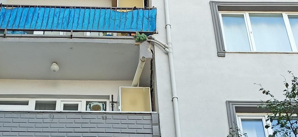 Ekipler ayrıca, sitedeki blokların birbirinden cüzzi şekilde ayrıldığı ve bazı bağımsız bölümlerin duvarlarında hasarlar oluştuğunu belirledi. Apartmanın girişine ‘riskli durum’ içerikli resmi uyarı yazıları asılırken, alt kattaki kıraathane geçici olarak kapatıldı.
